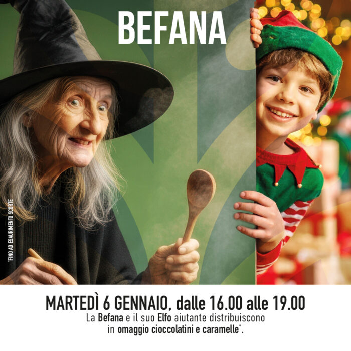 📆 Il 6 gennaio, dalle 16:00 alle 19:00, la Befana e il suo Elfo fanno tappa al Centro Commerciale per un pomeriggio dolcissimo ✨
